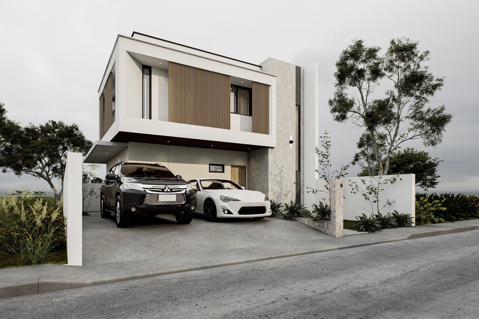 - Concrete fence and gate